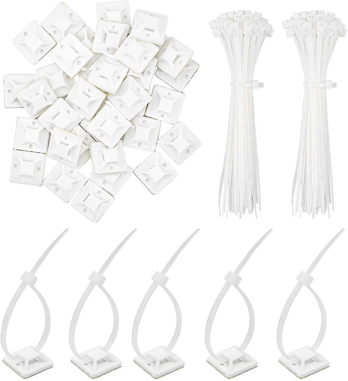 500 Pack Adhesive Mounts Self Adhesive Cable Tie Base Holders With Multi-purpose Self-locking Nylon Cable Zip Ties, White