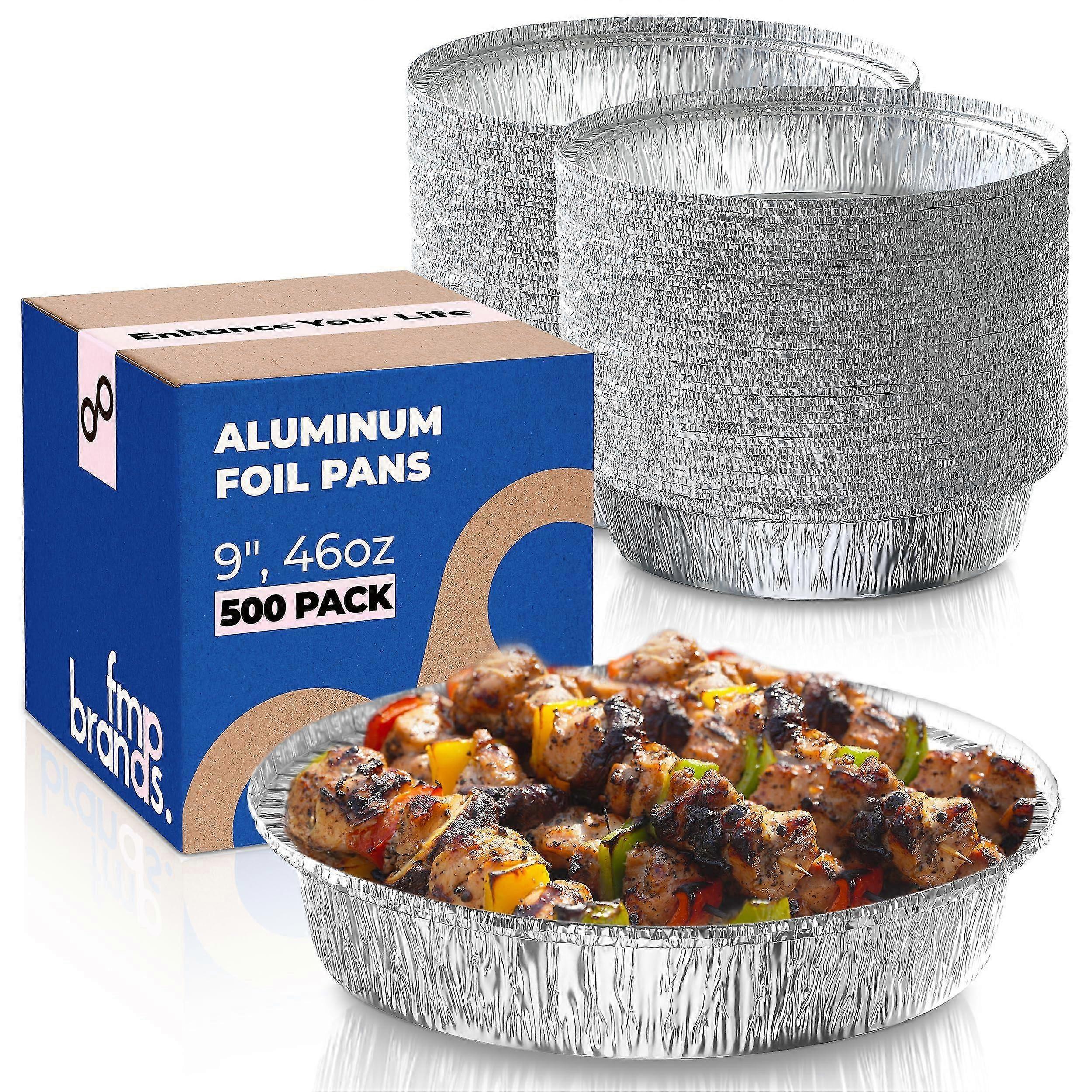 500 Pack 9 Inch Round Aluminum Foil Pans - 46 Oz Take Out Containers Disposable - Circle Cake Pan for Pies and Cakes