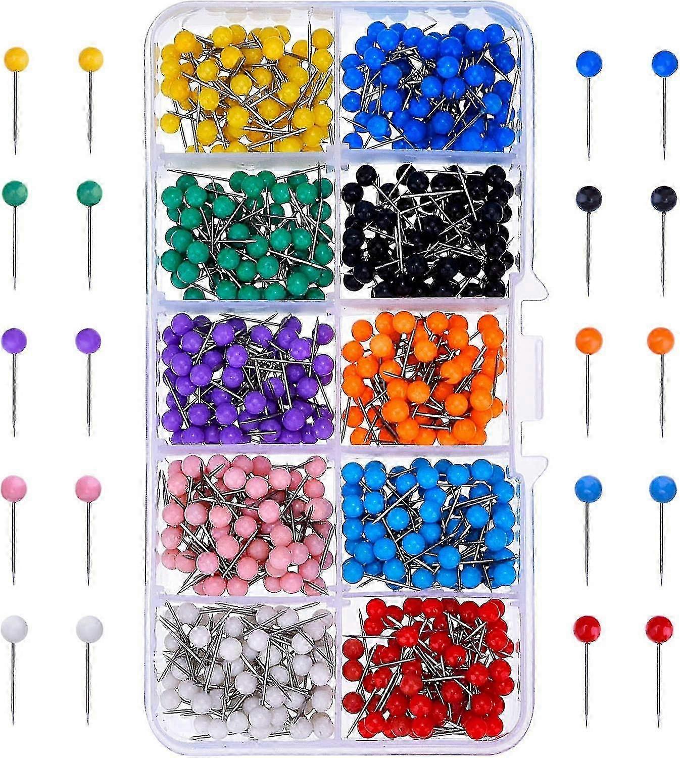 500 Pieces Round Head Push Pins 10 Colors for Office School and Home Use