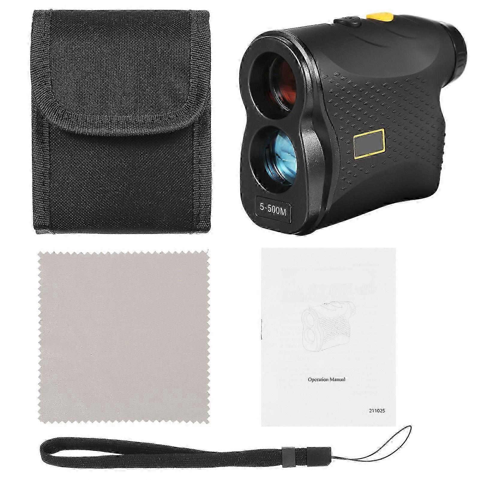Full package includes carrying pouch, hand strap, lens cleaning cloth, user manual.Specification:This Rangefinder, with 6X magnification and multi-layered optics, lets you see most objects clearly with a max range of 500 or 600 or 900 meters without having to get closer. Its multiple modes (Distance, Speed, Scan, Fog, Flag lock) bring you amazing experience and fun in different practices. You can switch the measurement between meter or yards as you wish. The compact palm size and light weight make this rangefinder convenient to carry without adding extra bulk to your bag. Hold it in your hand and go to explore the outside world!Features:HIGH PRECISION: This Rangefinder is capable of measuring a long range up to 500 meter, 600-meter or 900-meter with an accuracy of 1 yard, and the speed of a fast moving object up to 300km/h. Built-in flagpole locking allows golfers to identify their flag sticks easily.CRISP CLEAR IMAGES: 6X magnification brings the distant targets 6 times closer, brighter on the ultra clear, multilayered optics, which guarantees superior resolution and stunning bright images without color difference.MULTIFUNCTIONAL: Distance, Speed, Fog, Flagpole Locking - great measurement device with various working modes, giving you amazing experience in Golfing, Hunting, Surveying, Sporting Events and Outdoor Adventures.PORTABLE AND : Measures just 4.1andquot