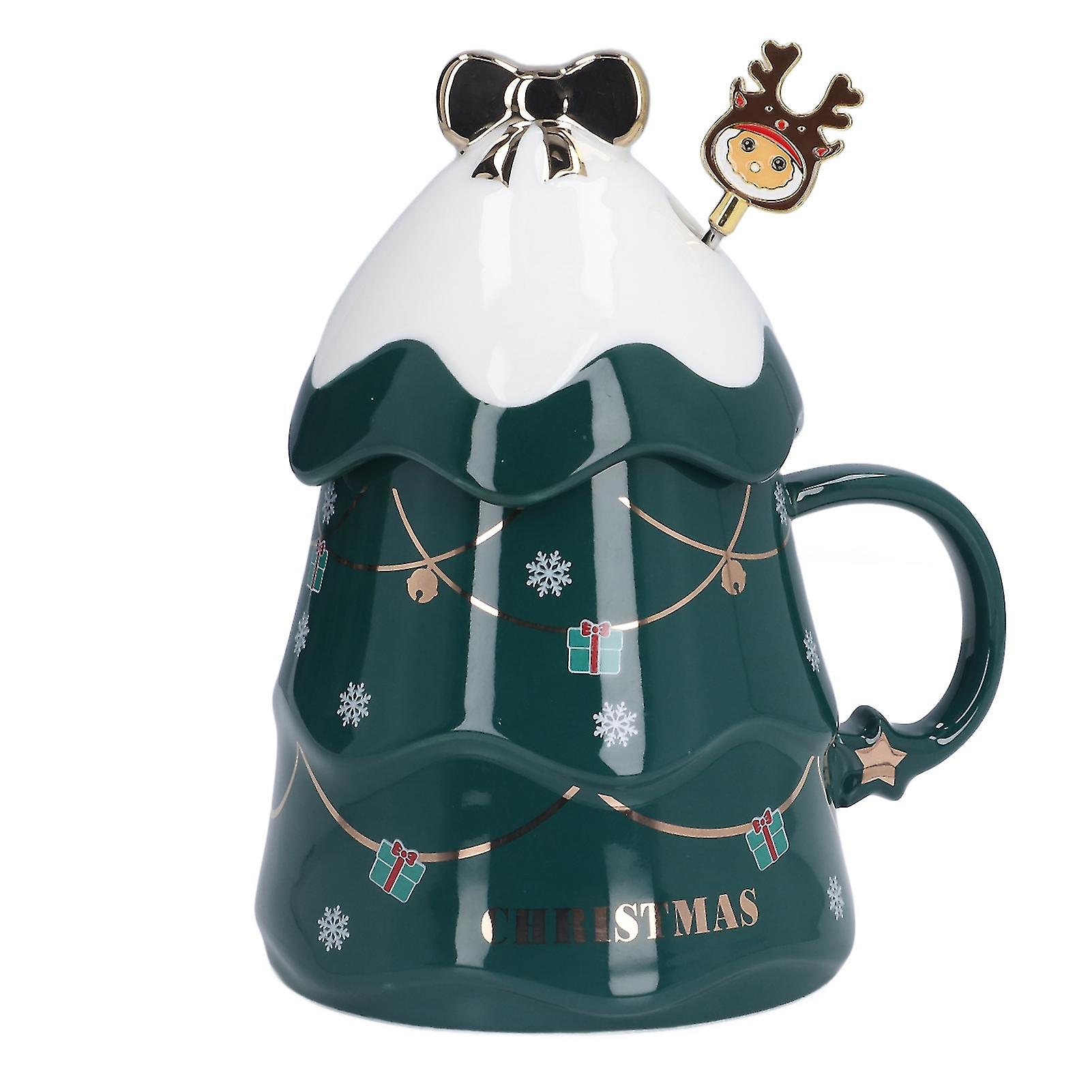 500ml Green Christmas Ceramic Mug with Lid & 17cm Spoon