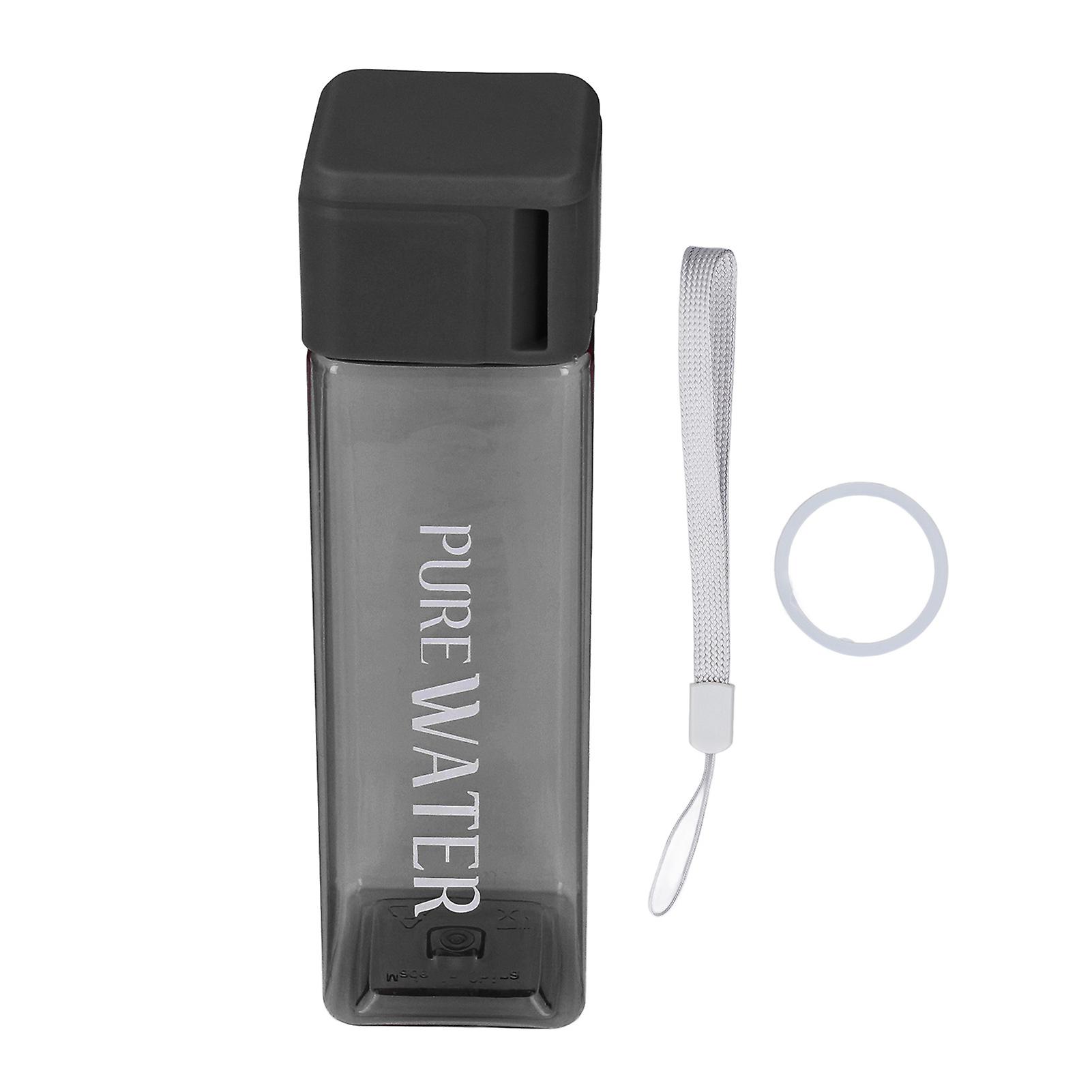 500ml 17oz Water Bottle Transparent Portable Letter Printed Drinking Water Bottle with Wrist Rope Black