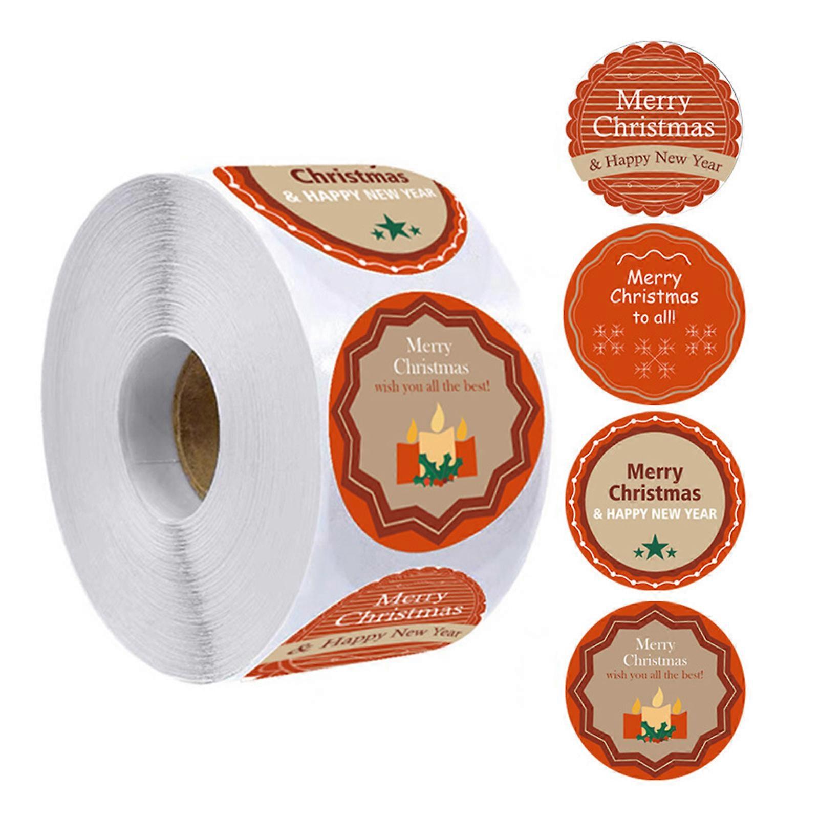 500pcs Merry Christmas Stickers 4 Designs Round Seal Labels for Kids Xmas Cards Envelopes Gift Tags