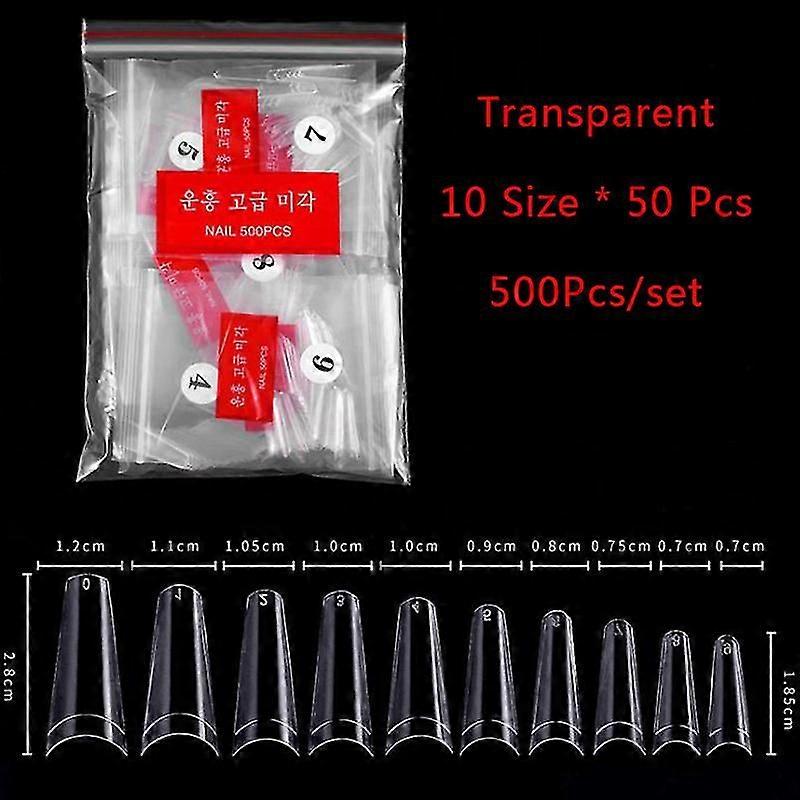 500pcs/bag False Long Nails Tips Full Cover Diy Acrylic Fake Nails 10 Sizes