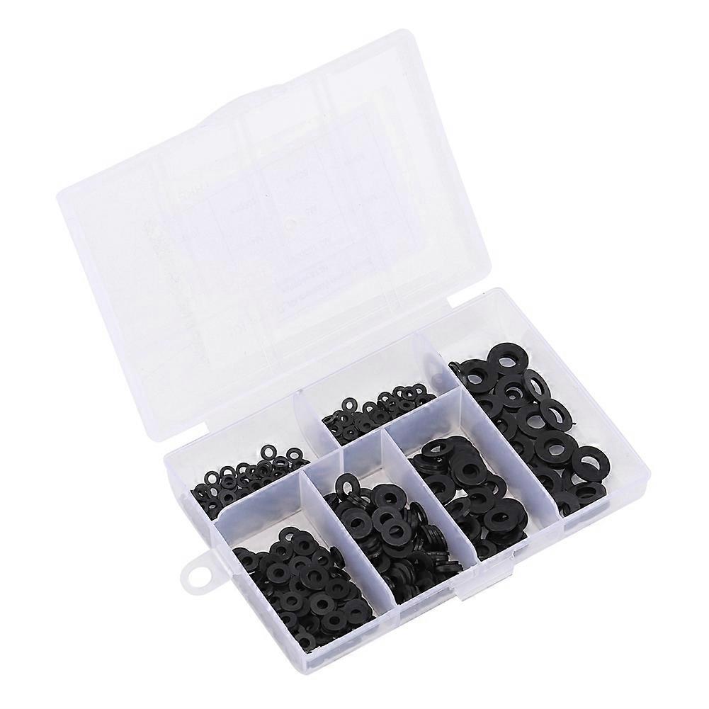 500pcs M2-M6 Nylon Flat Washer Gasket Plain Washers Assortment Kit with Box (Black)