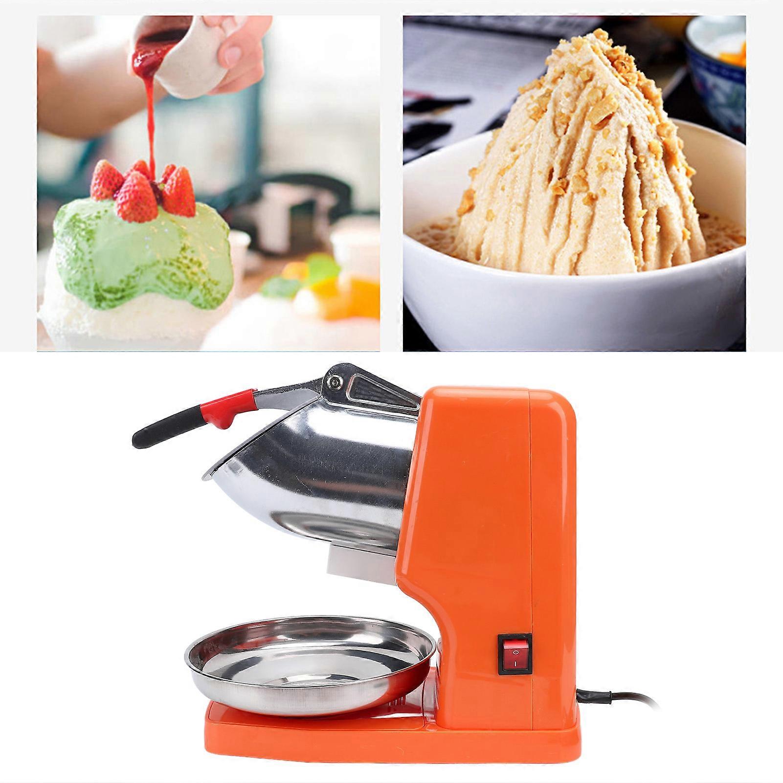 500W Electric Ice Crusher 2 Blades Snow Cone Maker Shaved Ice Machine Stainless Steel for Home Commercial Use Orange EU Plug 220V