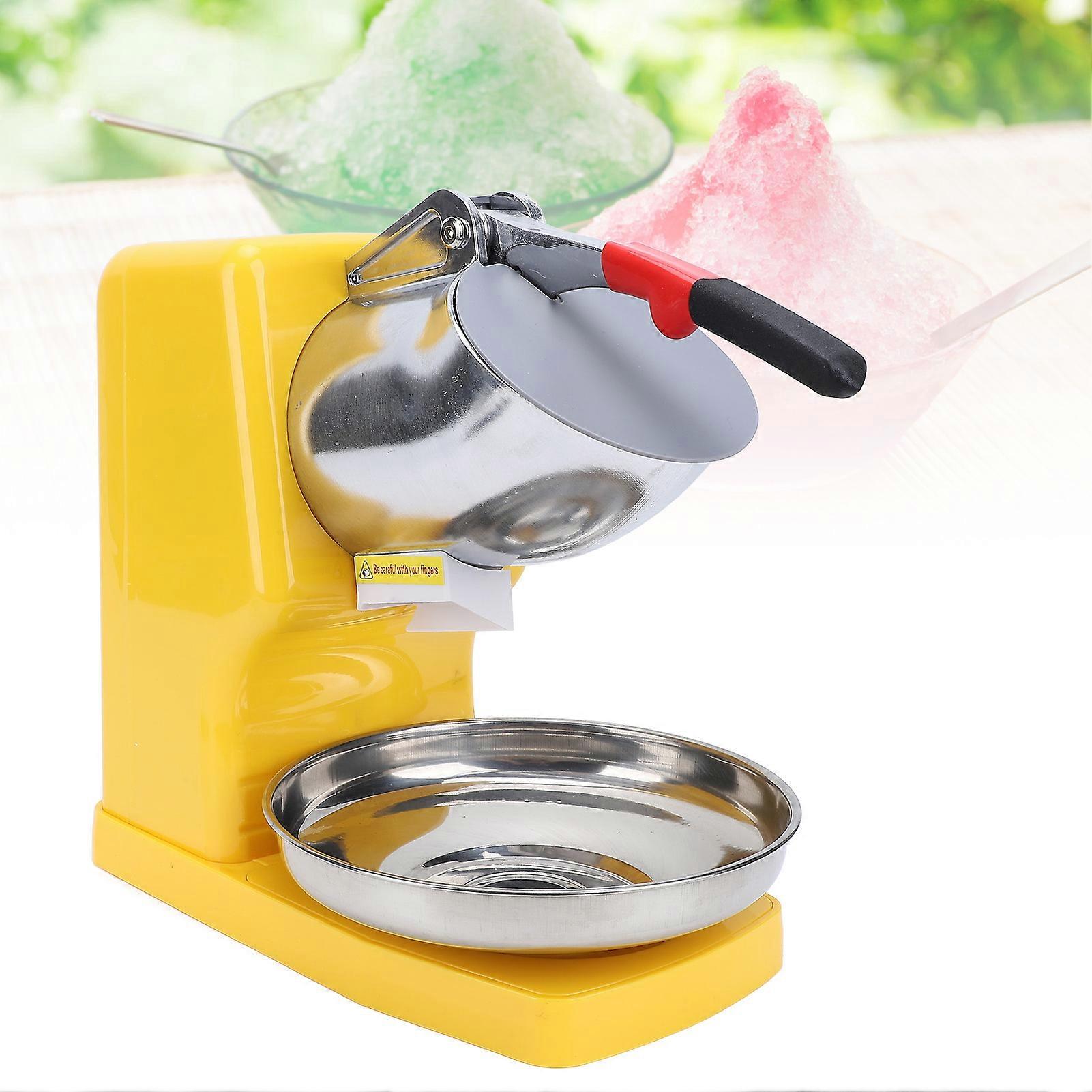 500W Electric Ice Crusher 2 Blades Snow Cone Maker Shaved Ice Machine Stainless Steel for Home Commercial Use Yellow EU Plug 220V