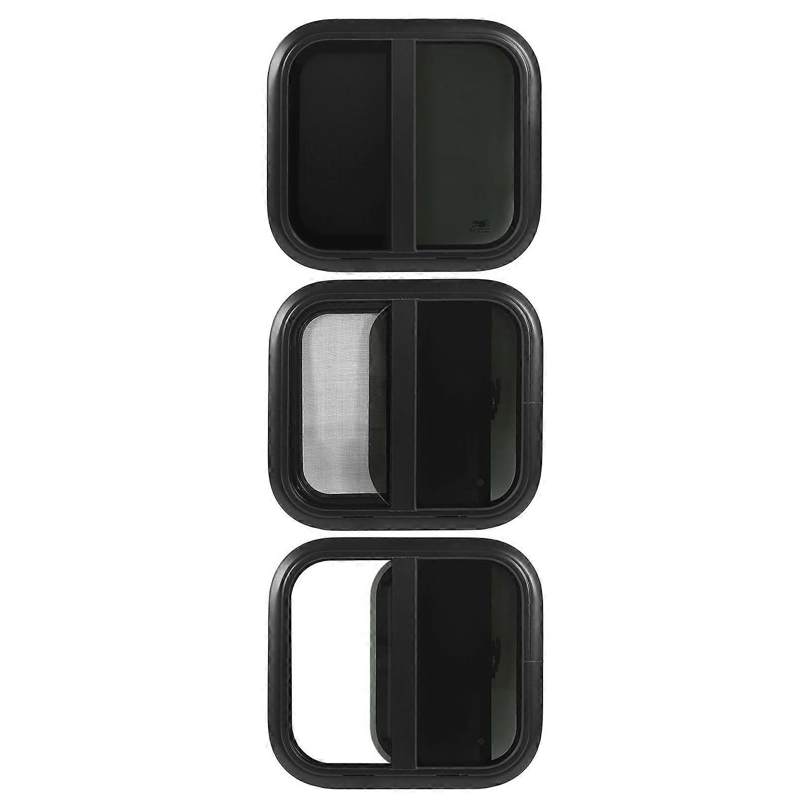 500x450mmm Rounded Sliding Windows Black Aluminum Alloy Frame UV Resistant with Movable Insect Screen for Caravan Camper Trailer RV for 33-38mm Wall