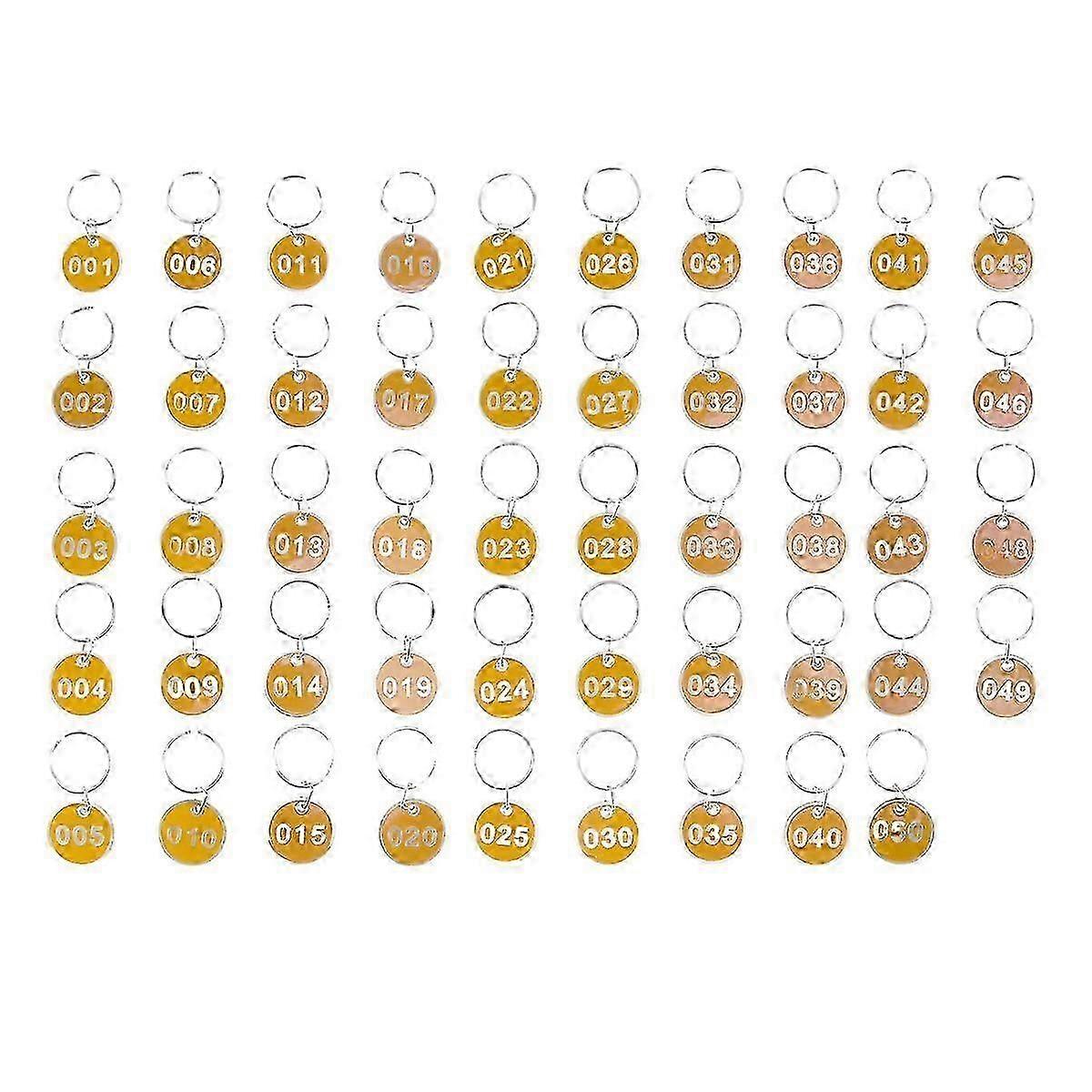 50Pcs Aluminum Alloy Luggage Tags Metal Number Plates Key Ring Labels (Yellow, 1-50) 3X3cm