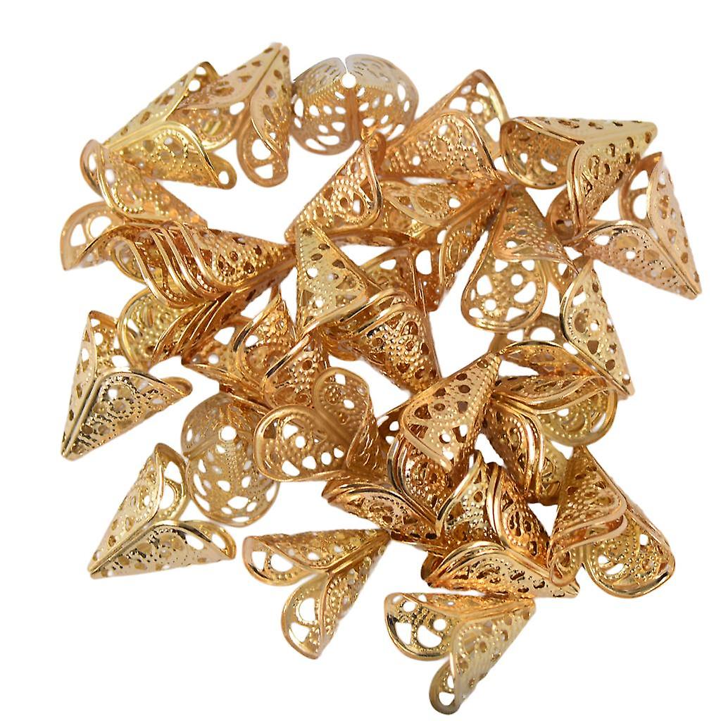 50Pcs 16mm Filigree Hollow Cone Flower Cap for Beads Tassel DIY Makings Gold
