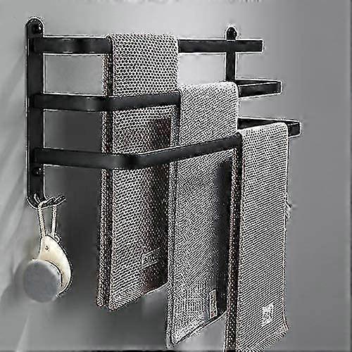 50cm Black Waterproof Wall-Mounted Towel Bar with Hook for Bathroom, Shower & Kitchen (Three Bars)