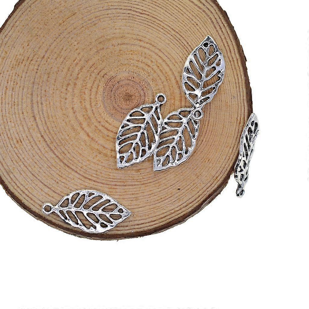 50 Pieces Filigree Leaf Charms Pendant Jewelry DIY Making Tibet Silver