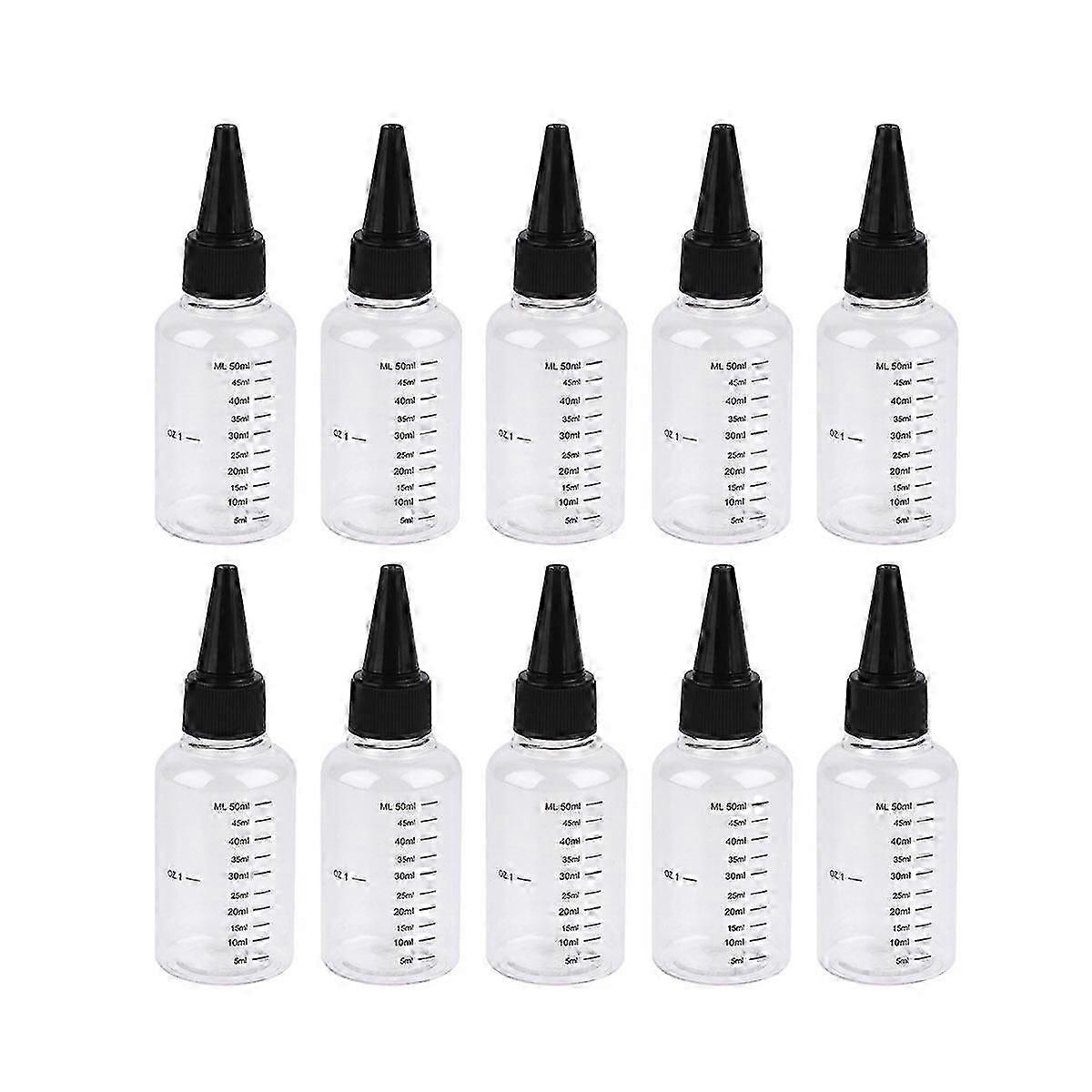 1 Package of 50ML Transparent Portable Travel Empty Bottles Squeezable Tip Dropper Bottles with Scale (10Pcs/Package, Random Color for Lid)