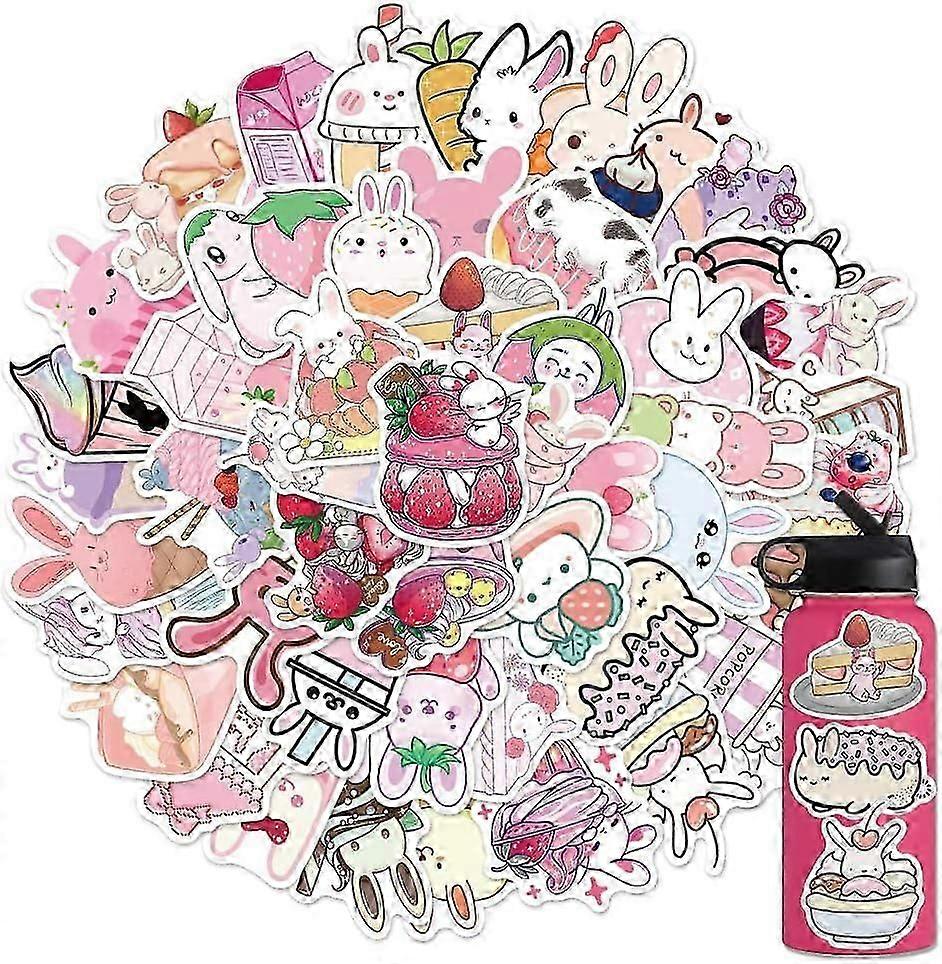 50PCS Cute Pink Rabbit Dessert Stickers for Water Bottles, Kawaii Aesthetic VSCO Stickers for Laptop Hydroflask Skateboard