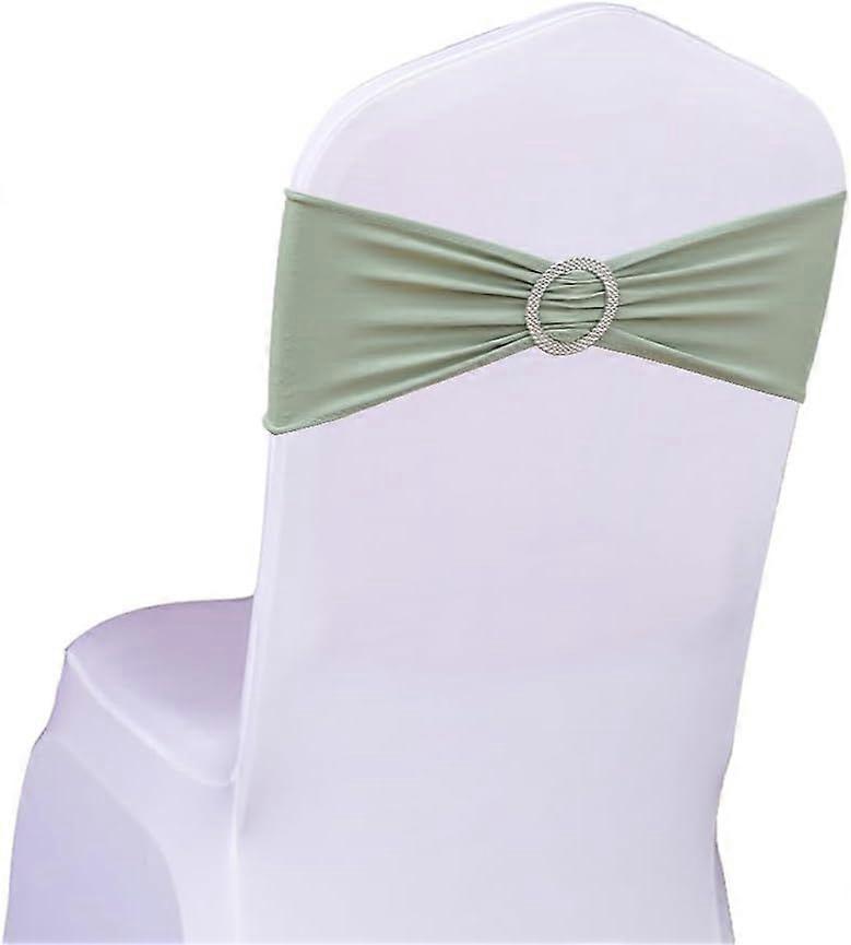 Pack of 50PCS Spandex Sage Green Chair Sashes Bows Elastic Chair Cover Bands