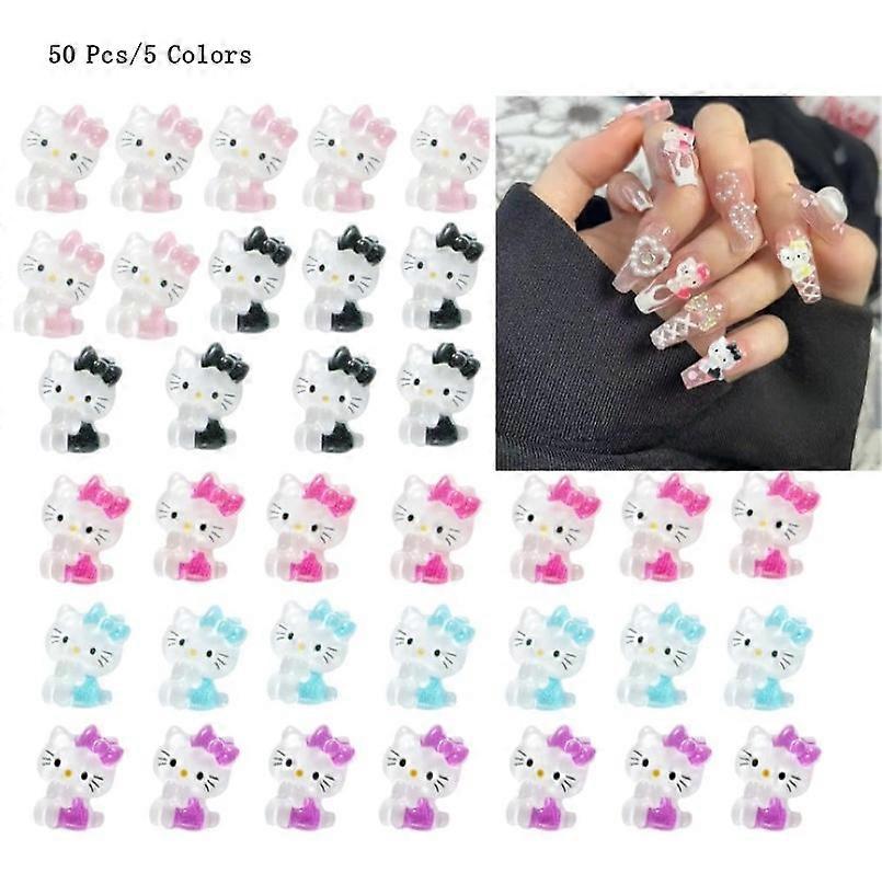 50pcs Nail Rhinestones 3D Kitty Cat Nail Art Charms, 3D Cartoon Kawaii Sanrio Nail Decorations for