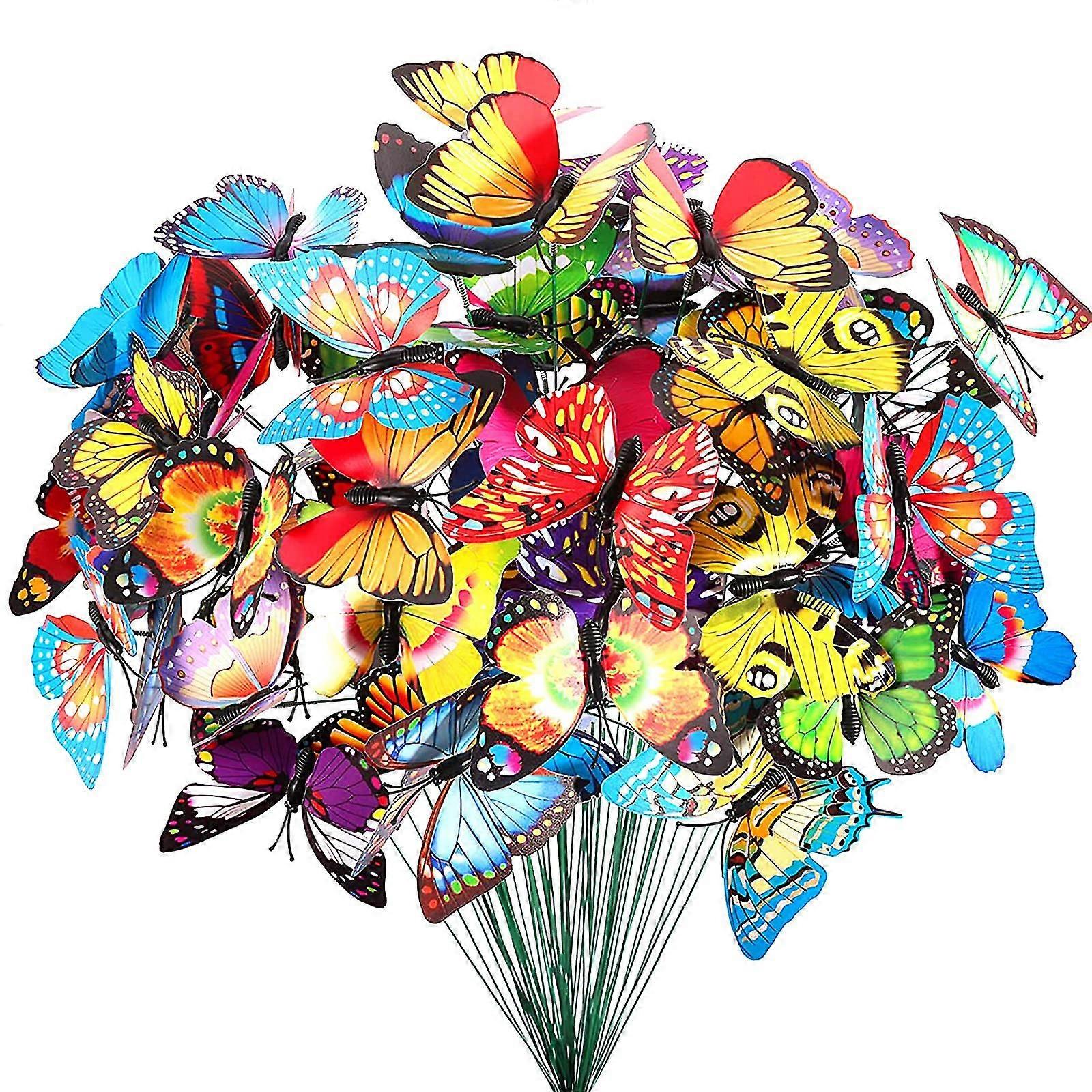 50pcs Butterfly Stakes, 7cm Garden Butterfly Stakes Decor Outdoor Yard Patio Planter, Random Color