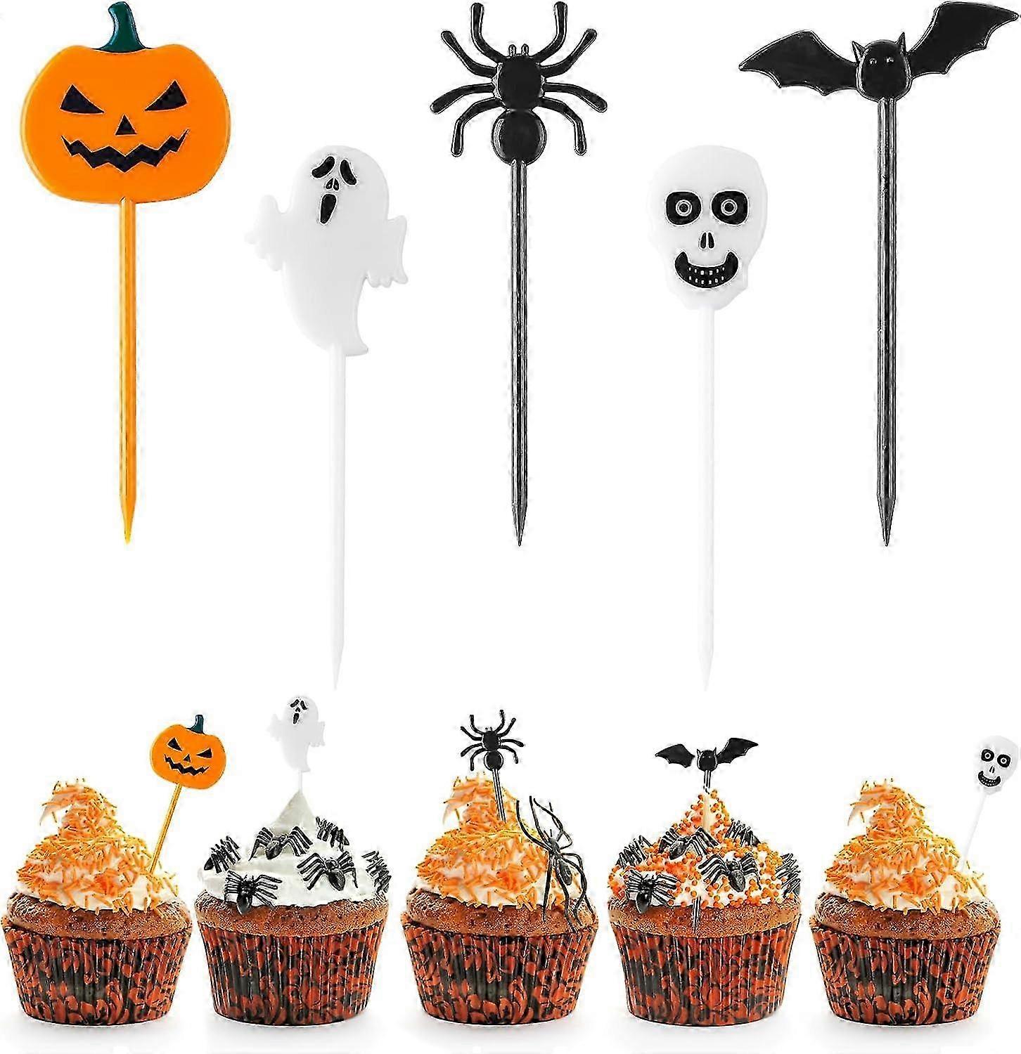50PCS Halloween Picks Cupcake Toppers Plastic Halloween Toothpicks Halloween Cupcake Food Cocktail Appetizer Picks for Halloween Baby Shower Birthday