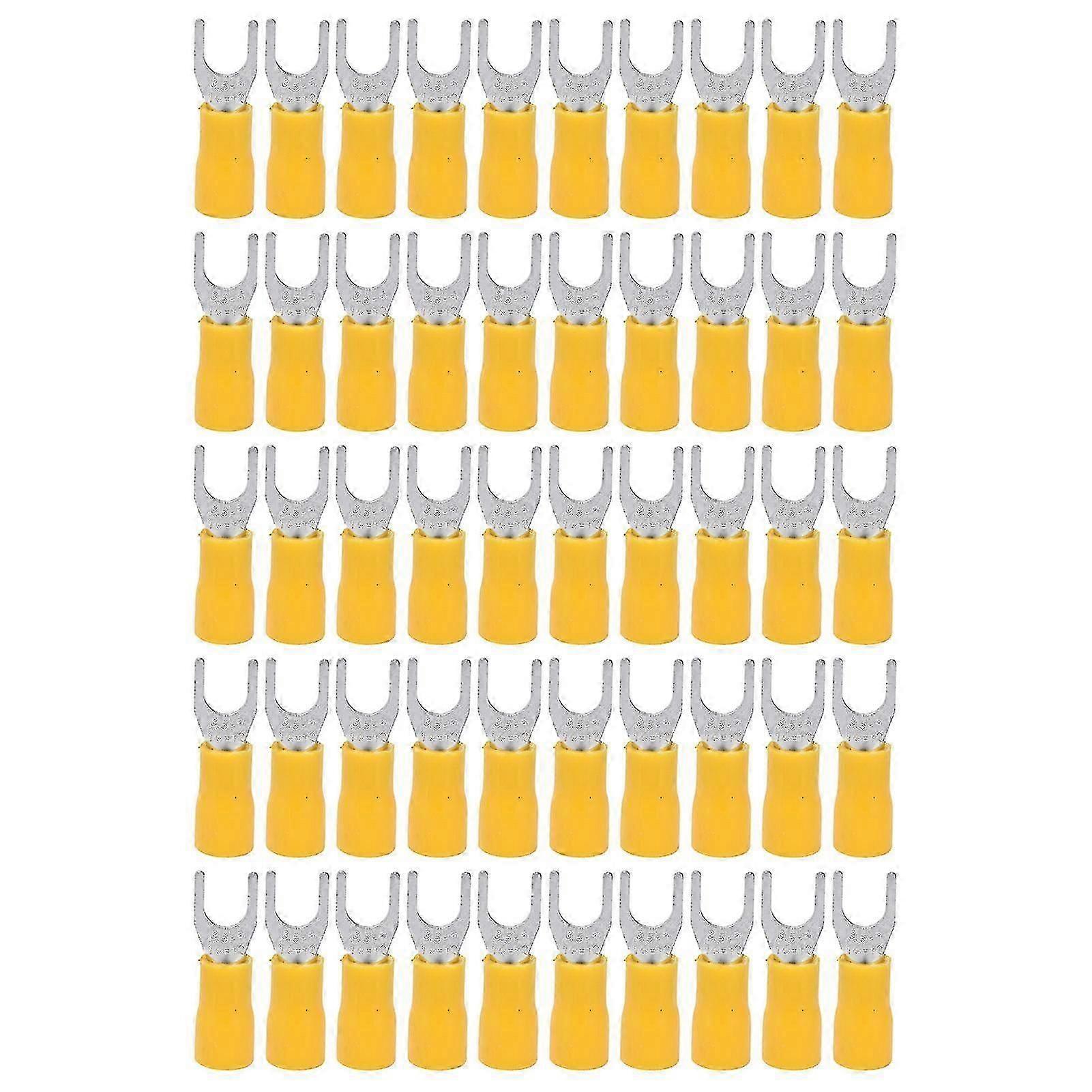 50pcs Fork Terminal Insulated 1412awg Wire Crimp Connector Set Kit For Equipmentsv3.55 Yellow