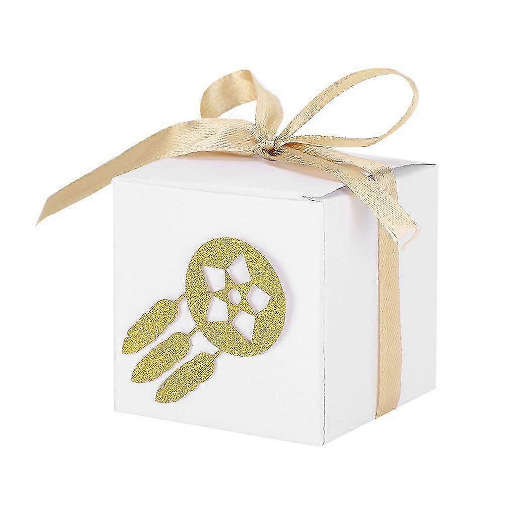 1Perfect for weddings, birthdays, bonbon buffets, family parties and more. 2Using golden ribbon as decoration, it makes the present more highend and beautiful. 3The cartons sold are flat, it will increase fun when you assemble them yourself. 4Made of kraft paper, which is environmentfriendly and healthy, harmless and will not deform once set up. 5The main color of the surface of the boxes are white, simple but elegant.