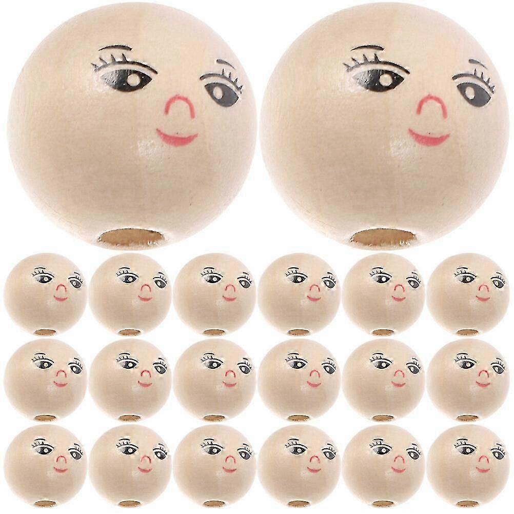 50Pcs Round Wooden Smile Face Beads Wood Loose Beads Round Spacer Beads with Hole