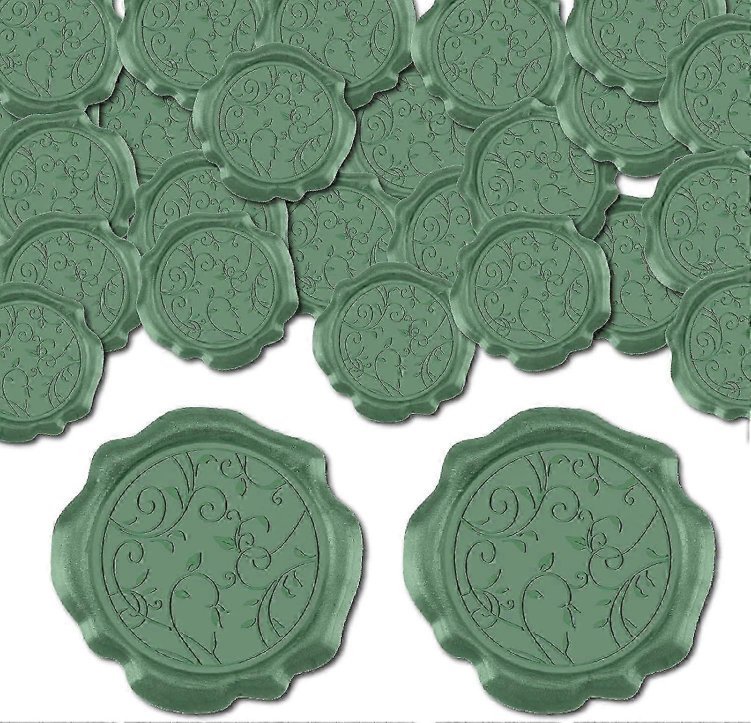 50pcs Leaf Wax Seal Stickers Sea Green Decoration Stickers Vintage Adhesive Envelope Sealing Stickers for Gift Wrapping Birthday Greeting Cards Making
