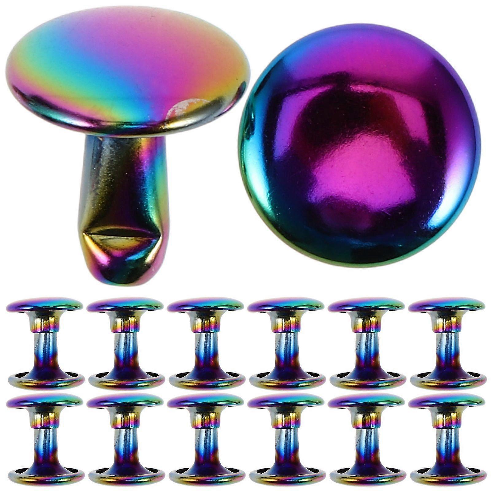 50pcs Rainbow Color Double Cap Rivets Metal Button Studs for DIY Crafting Projects Purses Handbags Shoes Belts and Crafting