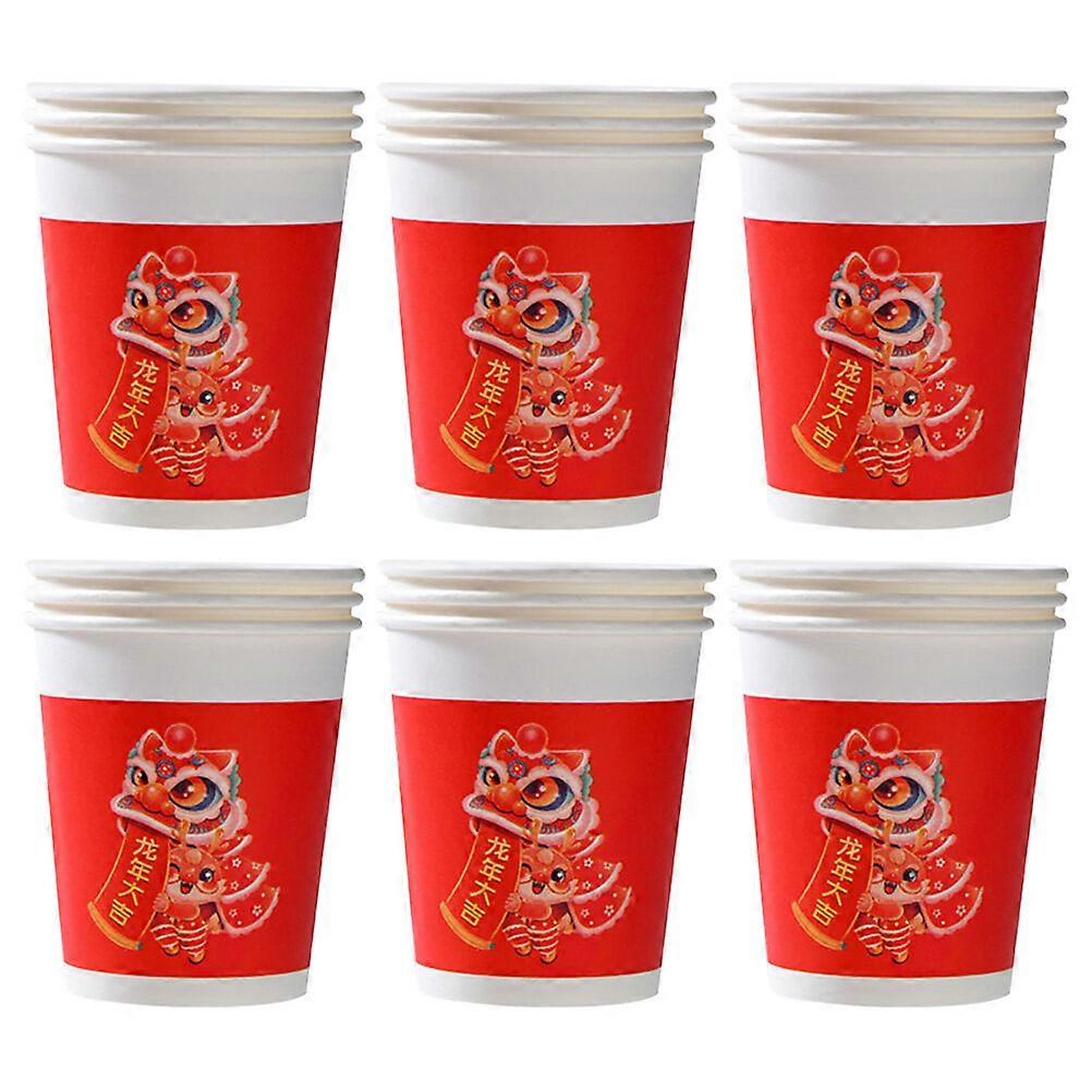50pcs New Year Paper Cups Disposable Drinking Cups Year of Dragon Coffee Milk Cups