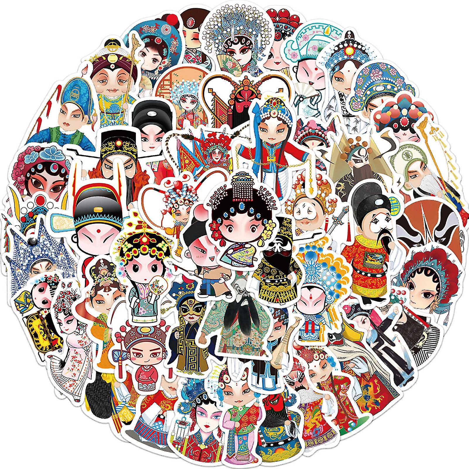 50pcs Graffiti Stickers Diverse Styles Beijing Opera Facial Design Pvc Adhesive Decals Diy Decoration Waterproof Cartoon Opera Art Decals Water Bottle