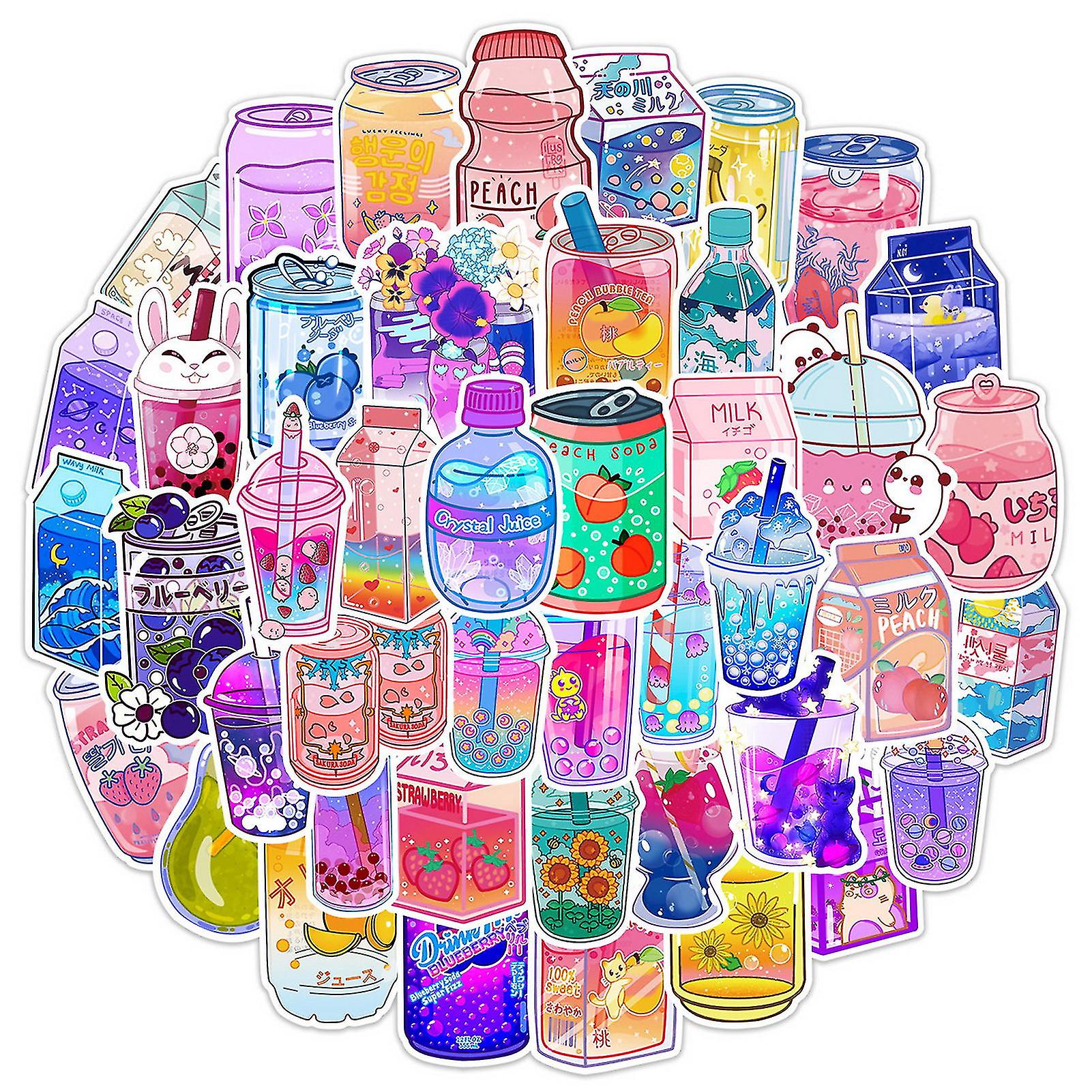 50pcs/set Various Patterns Self-adhesive Waterproof Graffiti Stickers Cartoon Beverage Pattern Laptop Luggage Decals Party Favor