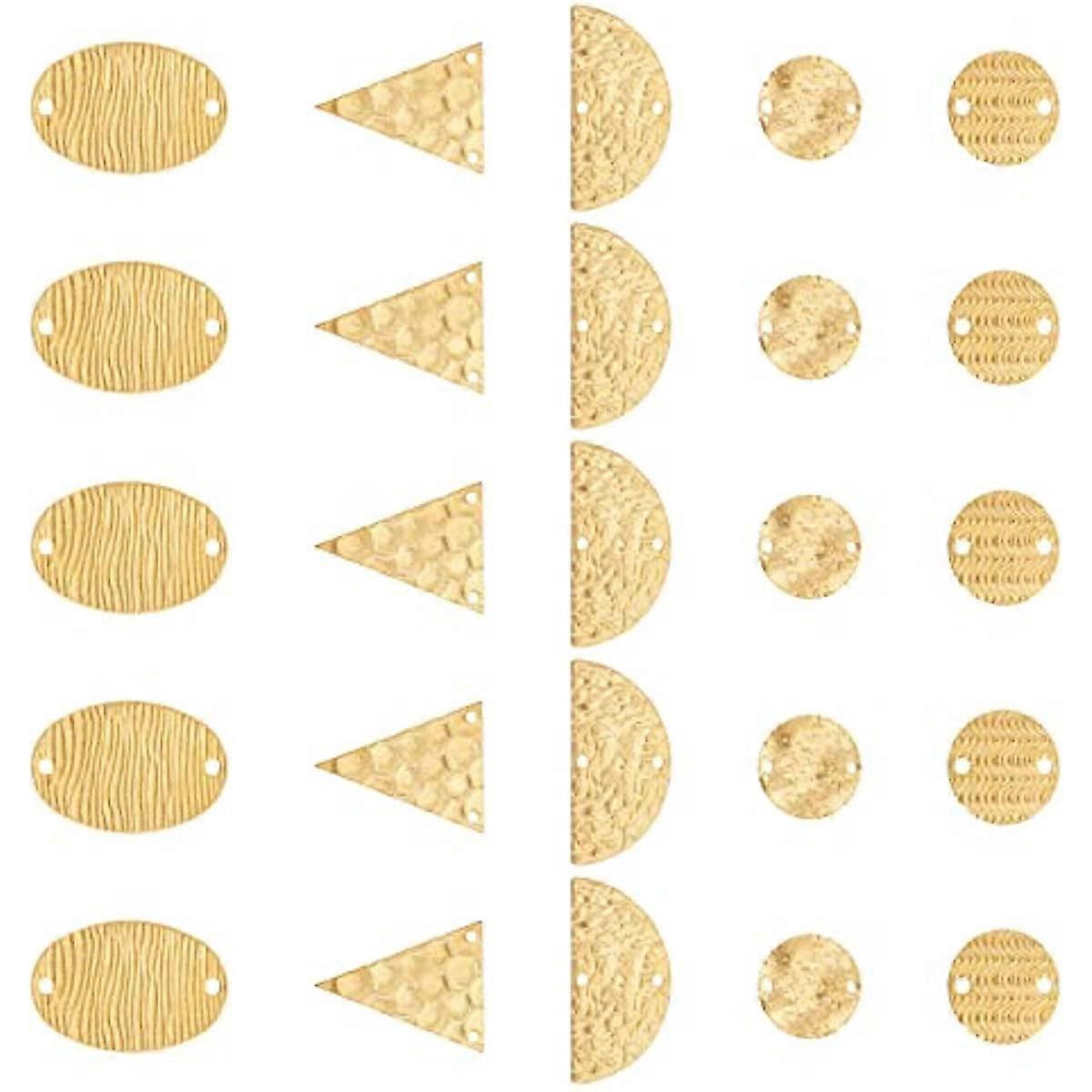 50Pcs 5Style Textured Brass Flat GeometricStyle Links Round / Circle / Semicircle / Oval / Triangle Pendants Links Connectors