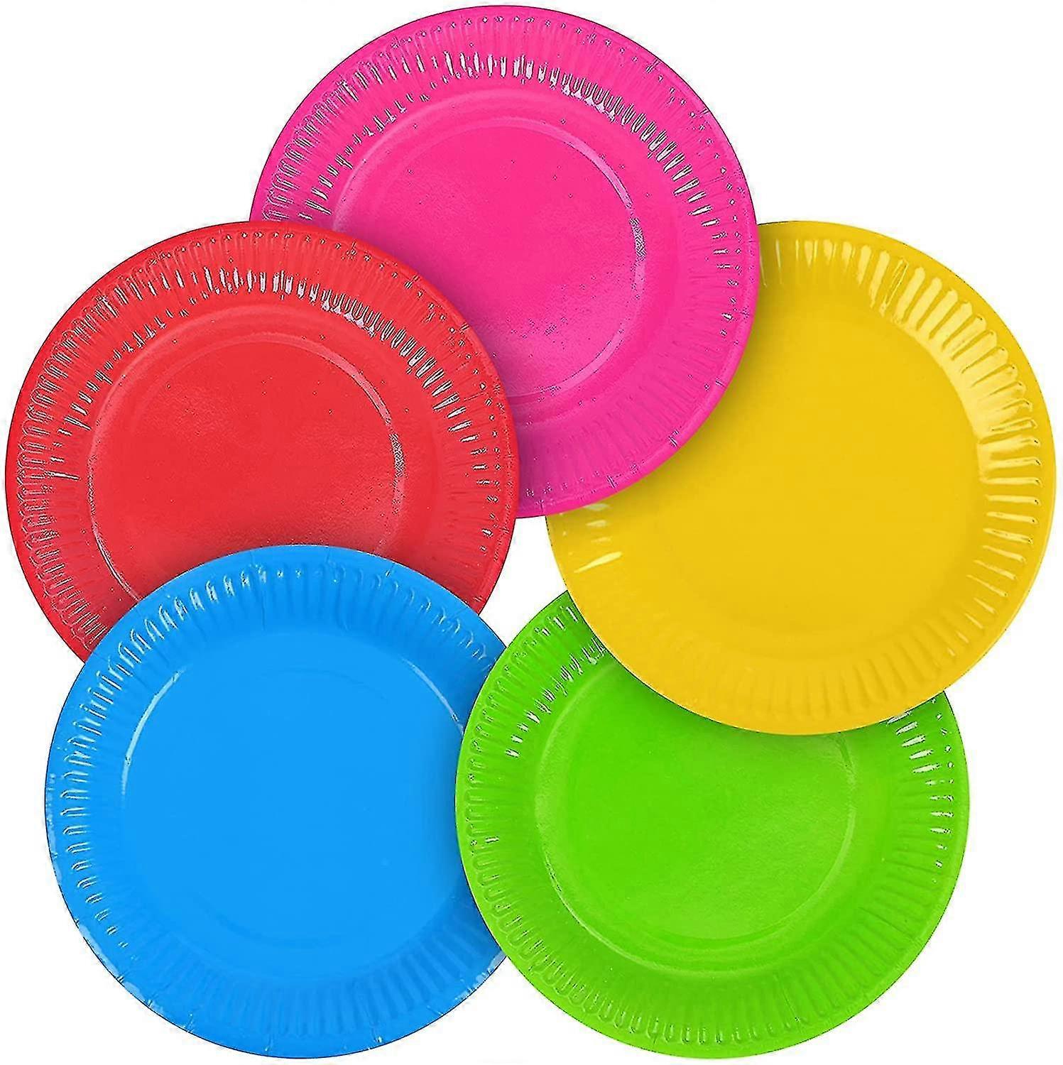 50pcs 7 Inch Neon Paper Party Plate, Round Dessert Paper Plates,Dinner Paper Plate,Party Tableware Paper Plates Birthday Party Supplies