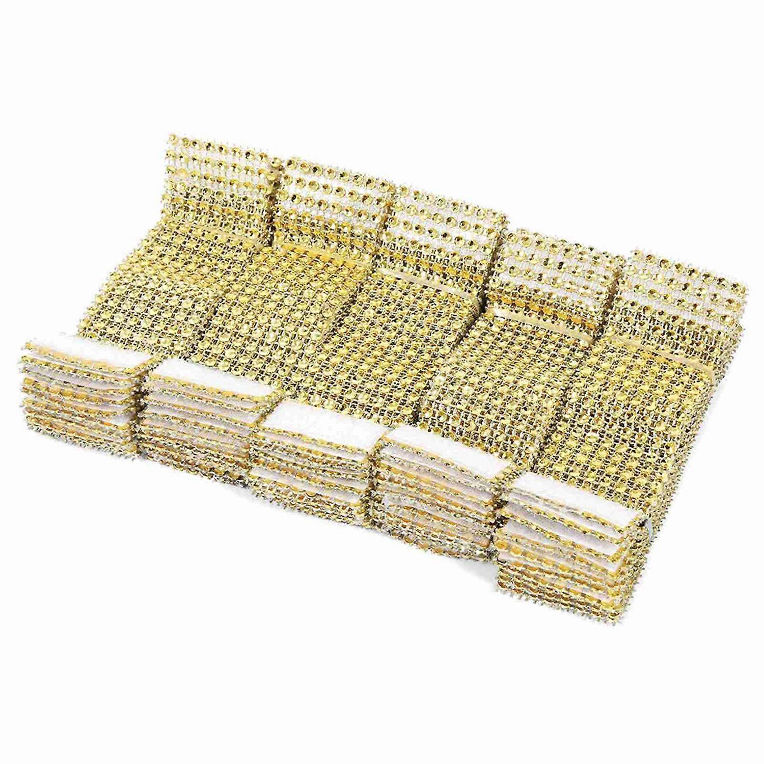 Our napkin ring has has 8 rows of simulated diamonds and is about 1.5 inches wide and 5inch long. Diamond "look", it will make your party look elegant and delicate. It also could be a chair sash ring to decorate parties. The magic tape design is for convenient using, it is also very durable and reusable, you could use it again and again. The Christmas party is coming, come on and choose our beautiful napkin rings to decorate your party