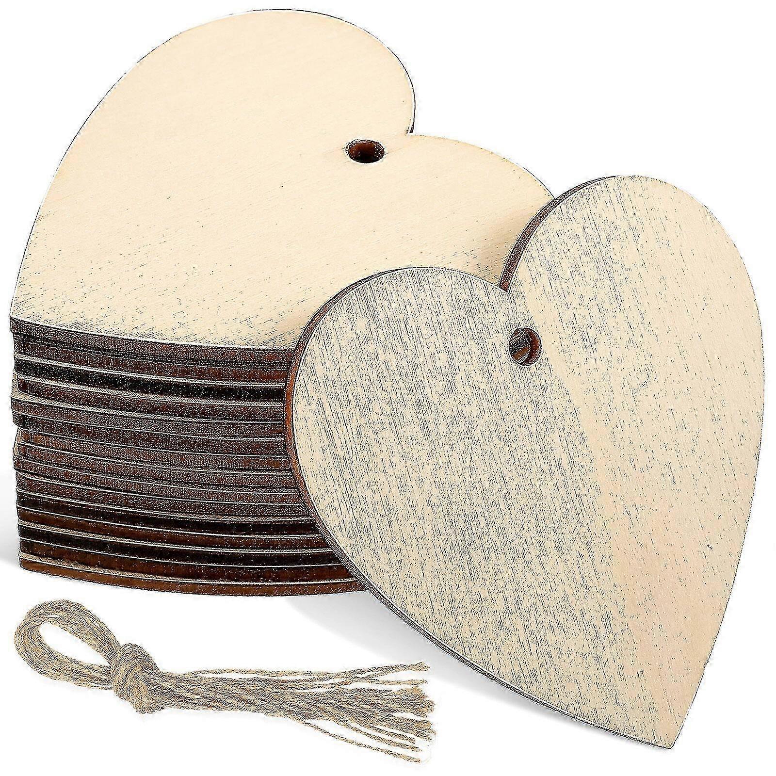 50pcs Wooden Hearts Paintable Wood Cutouts Unfinished Wood Heart Crafts Hanging Pendants With Ropes
