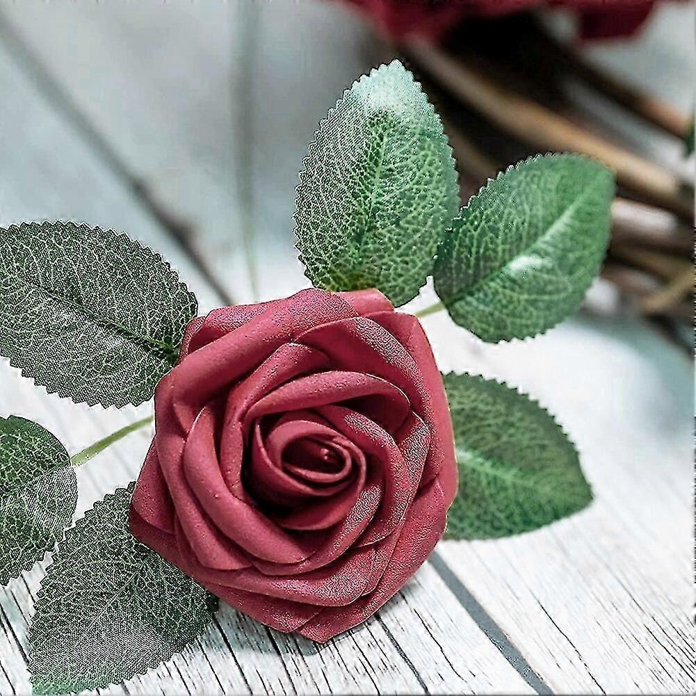 50pcsset Wine Red Rose Artificial Flower With Stem Real Looking Artificial Rose Red Office Centerpieces Home Decor