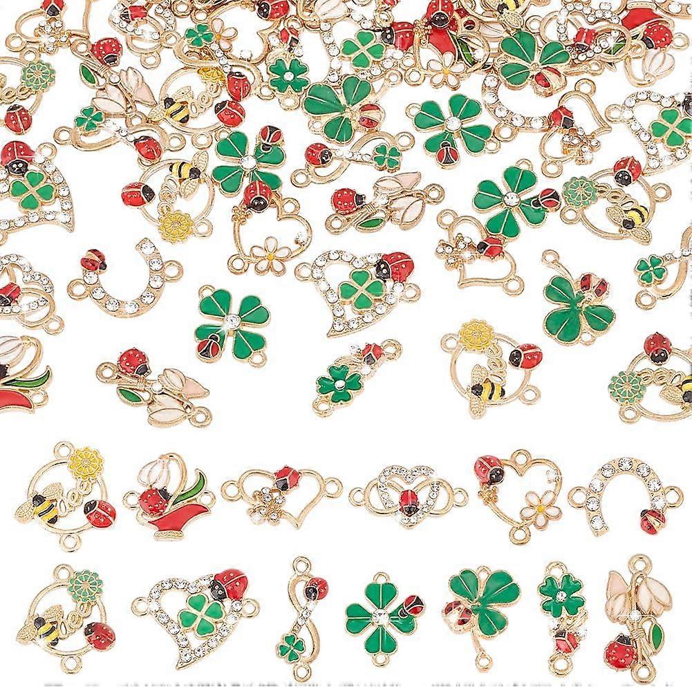 52Pcs 13 Styles Alloy Enamel Connector Charms Crystal Rhinestone Links Light Gold Mixed Shapes 10~21.5x11~22x2mm Hole: 1.6~2mm 4pcs/style