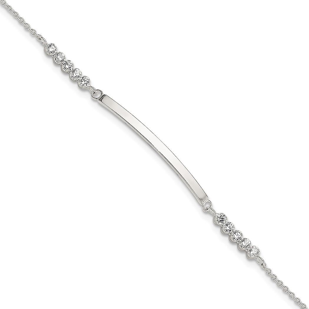 5.25mm 925 Sterling Silver With Cubic Zirconia With 1in Extension ID Bracelet 7 Inch Identification-Bracelet for Women