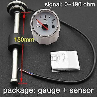 52MM Fuel Level Gauge + Fuel Level Sensor 100mm 200mm 250mm 500mm Water Tank Level Indicator Meter Red Light 0-190ohm 930V DC