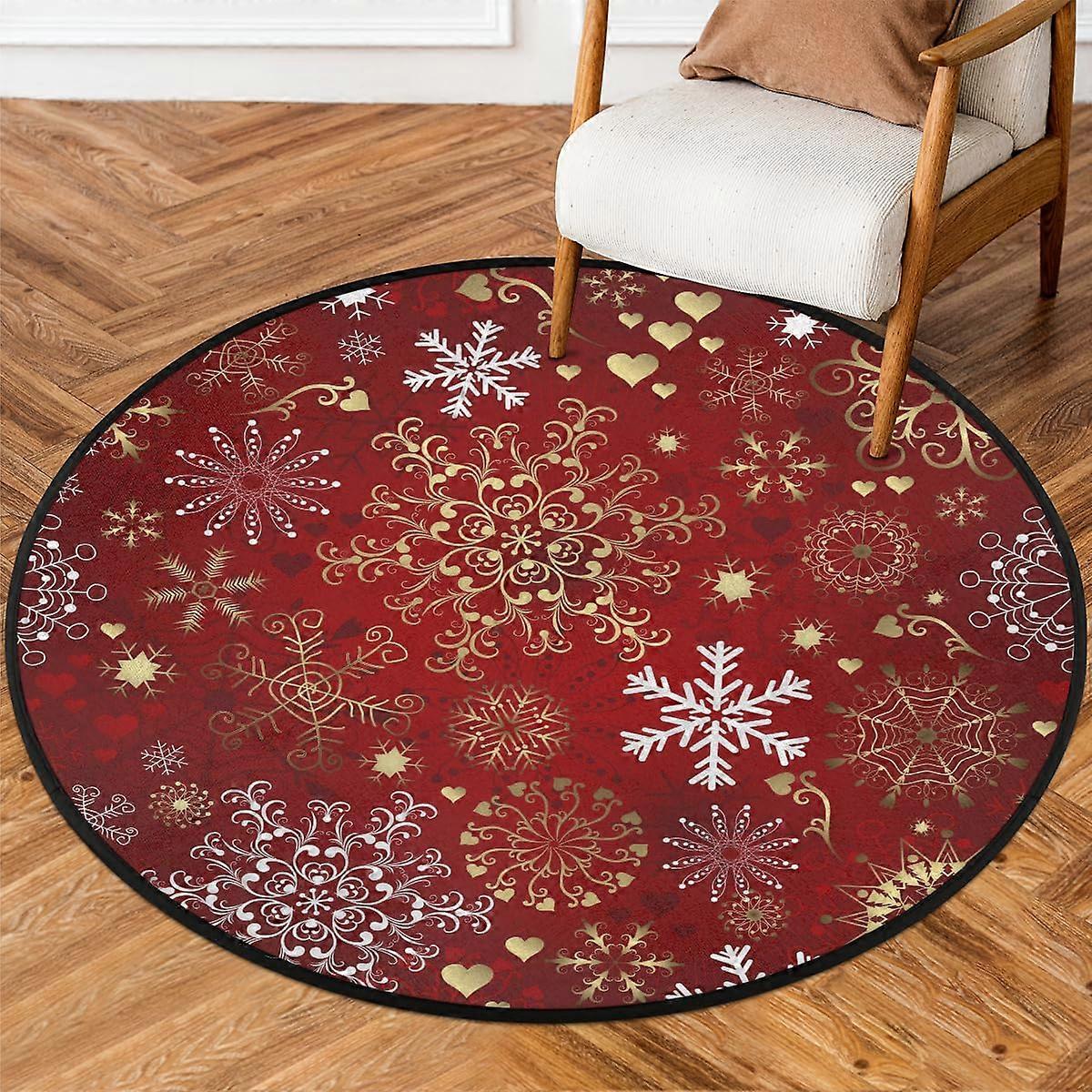 5.3ft Round Red Christmas Snowflake Area Rug, Soft Absorbent Carpet for Kids and Adults, Living Room Nursery Home Decor