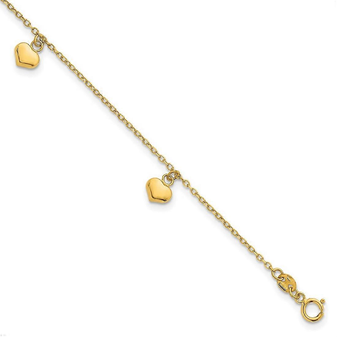 5.35mm 14k Solid Yellow Gold Polished 3d Love Heart With .75 Inch Extension Bracelet 6.5 Inch Link-Bracelet for Women