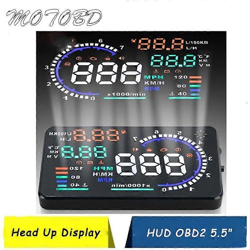 5.5"LargeScreenCarHUDHeadUpDisplayWithOBD2InterfacePlug&PlayA8