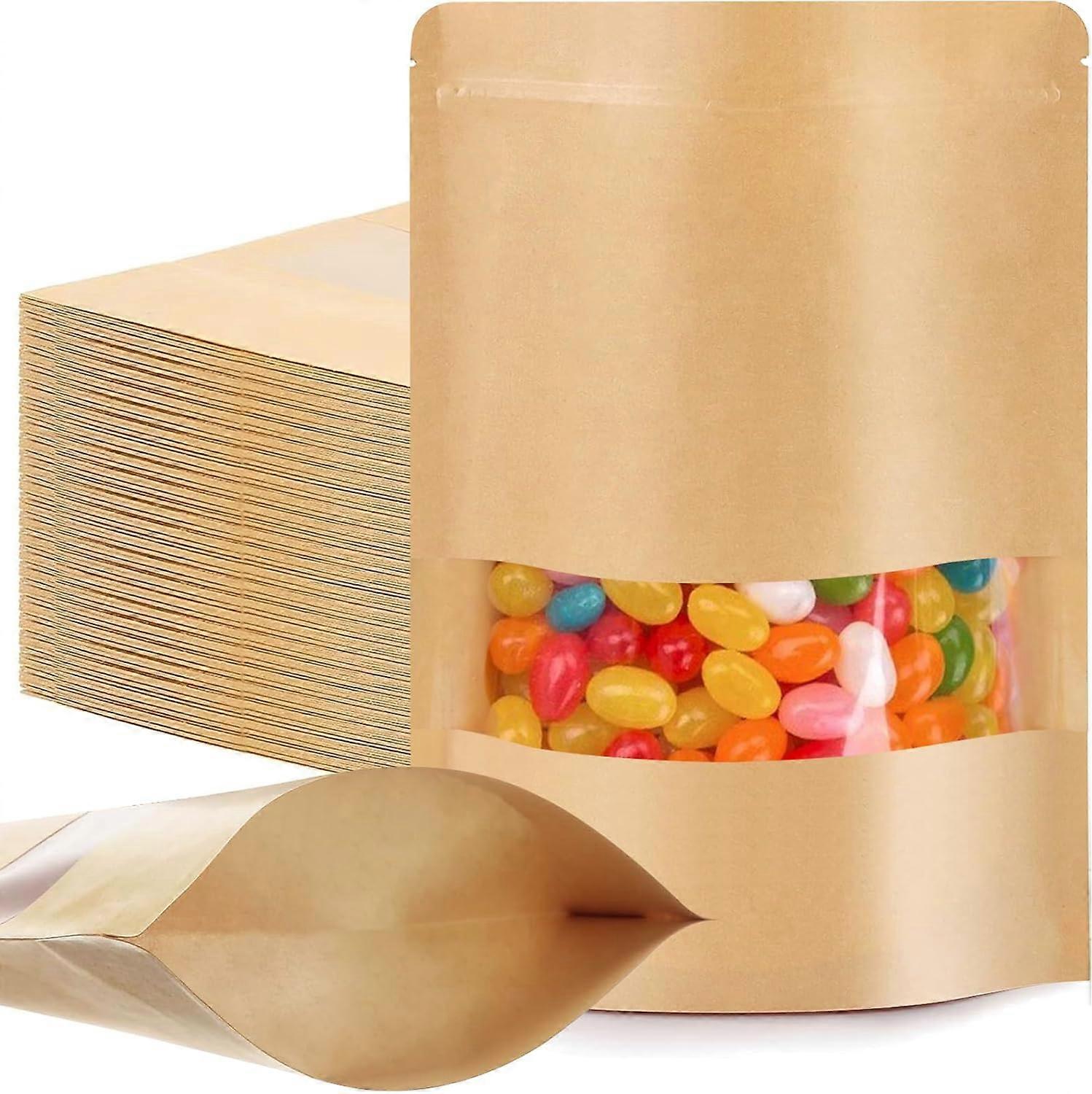 5.5" x 7.9" Stand Up Kraft Paper Bags with Frosted Window 100 Count Resealable Bags for Small Business