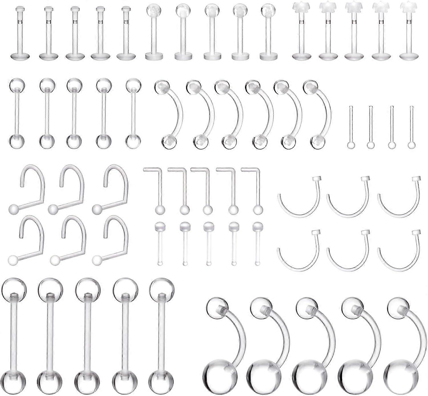 55 PCS Clear Piercing Retainer Clear Lip Piercing Transparent Nose Rings for Work Plastic