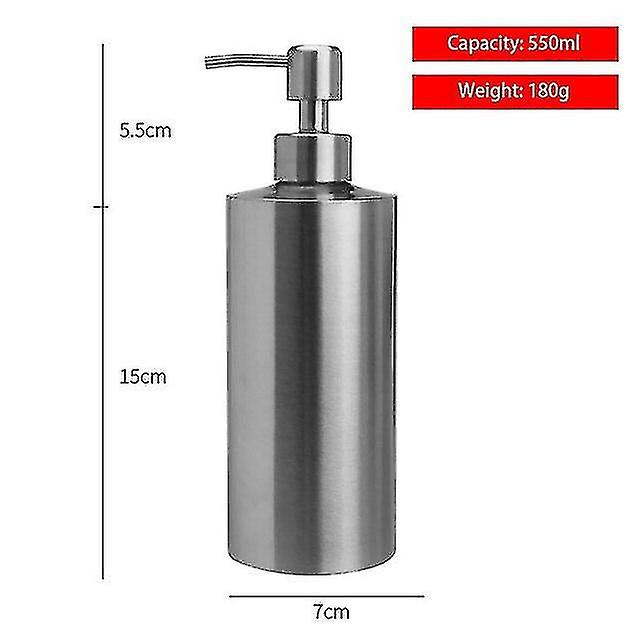 550ML Stainless Steel Soap Dispenser Bottle Soap Foam Foaming Pump Empty Bottle Liquid Shower Gel Foam Pump|Liquid Soap DispensersFeature:Made of high grade 304 stainless steel material with acid-resistance, corrosion-resistance and polishing finishing process, durable and safety to use.Can be repeatedly used to add liquid soaps, lotion soaps, synthetic detergents soaps.Wide opening, it's extremely easy to install and refill in a few seconds.Large capacity, it can be refilled with 550ml liquid.With a pump, it's easier to get liquid out.Description:Condition: 100% Brand NewMaterial: High Grade Stainless Steel 304Color: Silver (as picture)Capacity:550mlSize:20x7cm/7.87"x2.75"(550ml)Package Weight: 225g(550ml)Package Contents:1 x Sink Soap Dispenser