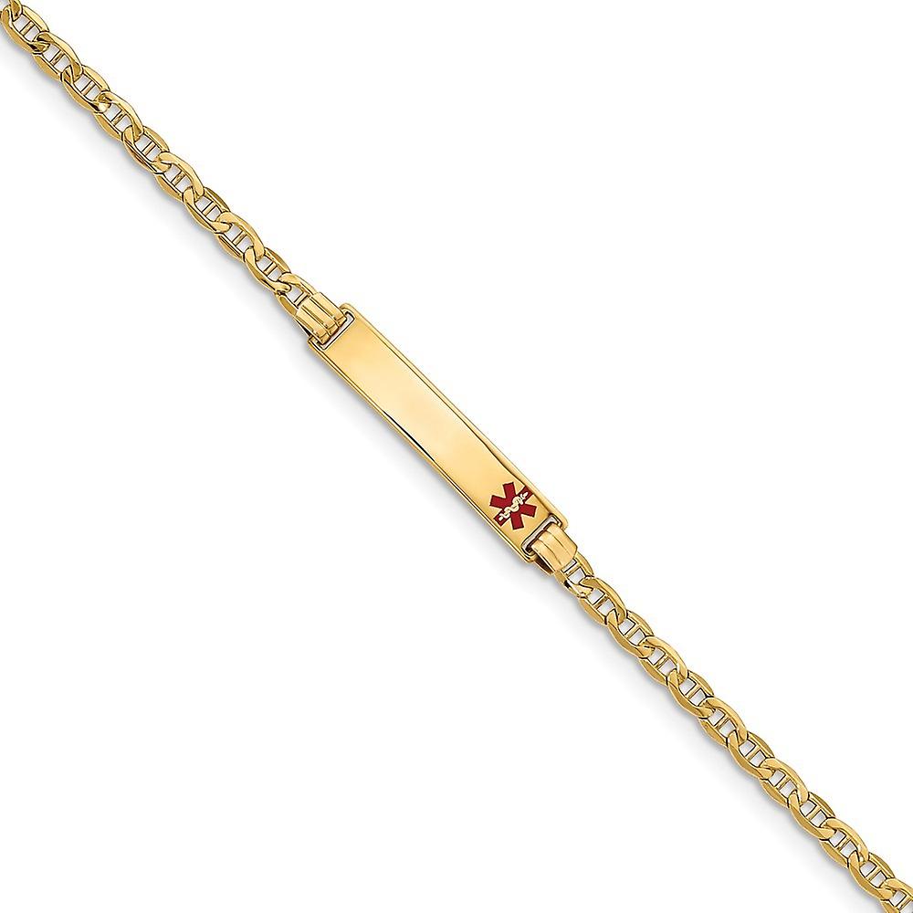5.5mm 14k Yellow Gold Medical Polished Red Enamel ID With Semi solid Nautical Ship Mariner Anchor Bracelet Identificatio