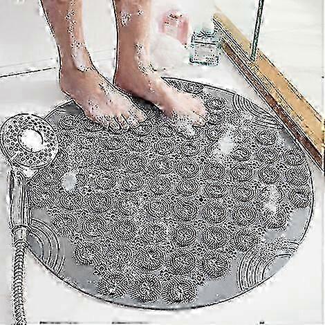 55x55cm,Dark Light Gray Round Massage Bath Mat Non-Slip Shower Mat Bathroom Mat Machine Washable Shower Mat Bathtub Mat with Drainage Holes and S