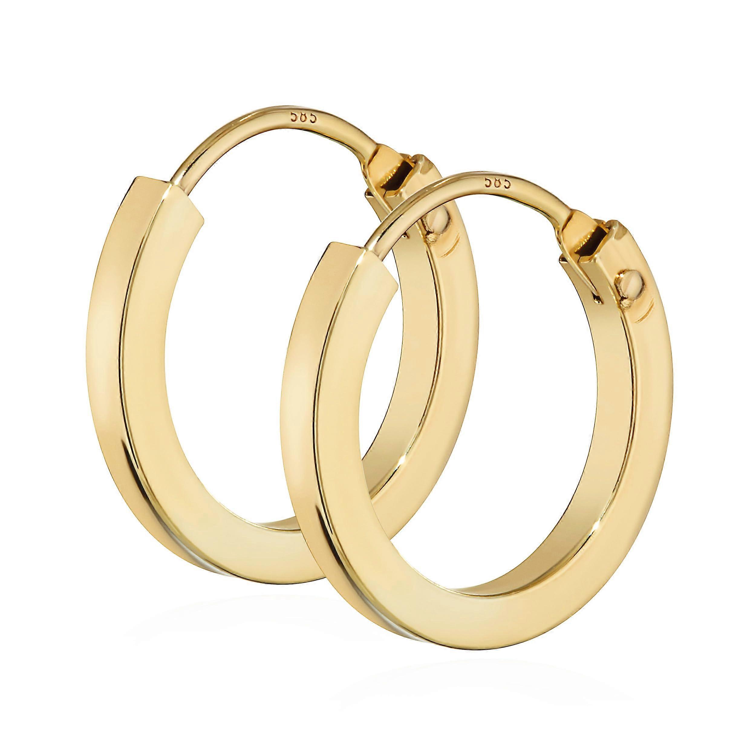 585 Yellow Gold Hoop Earrings Pair Flat Hoops 14 Mm 14K Gold Model 1844