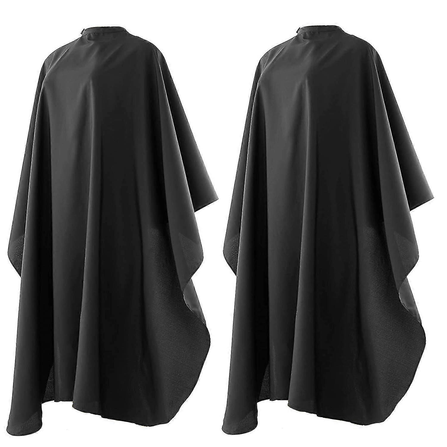 Professional Barber Cape, Salon Cape With Snap Closure For Hair Cutting, Nylon Water Resistant, 59 X 47 Inches - Black - 2 Pcs