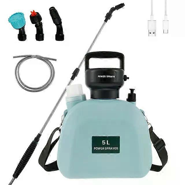 Features: [5L/1.35 Gallons Large Capacity] This electric plant sprayer has a large capacity of 5L/1.35 gallons, sufficient to meet your daily needs, and you do not need to refill it frequently. It can be sprayed automatically at the touch of a button, and there is no need to water your plants manually. [Adjustable Nozzle] The plant sprayer comes with 3 nozzles, and each nozzle has 2 spraying modes, fine atomization mode and direct powerful mode. You can choose different nozzles and modes according to your actual needs, and the electric mist sprayer will meet all your needs. [2000mAh Rechargeable Battery] The electric water sprayer is powered by a 2000mAh battery, which can be used for about 2.5 hours after 3 hours of charging time. We provide a USB charging cable which allows you to charge it anytime and anywhere, no need to worry about running out of battery power. [Adjustable Shoulder Strap] The electric plant sprayer adopts a soft and comfortable shoulder strap, so you can carry it on your back to work. The widened design reduces the pressure of the shoulder, and you can freely adjust the length to relieve fatigue, and improve your spraying comfort when performing outdoor tasks. [Wide Application] The electric sprayer is suitable for indoor and outdoor spraying of various solutions, plant watering, and fertilizing, and it also can be used for pet bathing, car cleaning, floor, and window cleaning, etc. It is a great assistant for gardening and cleaning. Specification: Product Name: Electric Plant Sprayer Material: plastic Color: green, blue (optional) Capacity: 5L/1.35 Gallons Size: 27.5 x 22.5 + 14.5 x 12cm/10.8 x 8.9 + 5.7 x 4.7 in Telescopic rod length: 32-60cm/12.6-23.6 in Voltage power: 7.4V/6W Battery capacity: 2000mAH Charging time: about 3 hours Working time: about 2.5 hours Application: garden, lawn, farm, orchard, etc Package includes 1 x Electric Plant Sprayer 3 x Nozzles 1 x USB Charging Cable