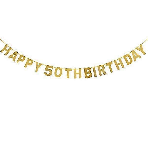 5M Happy 50th Birthday Glitter Golden Garland Bunting Banners for Birthday Decoration